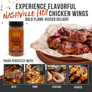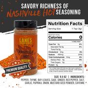 • Fiery flavor inspired by Nashville-style hot chicken - Lane's BBQ Nashville Hot Seasoning is expertly crafted to capture the signature fiery flavor of Nashville-style hot chicken. Made with premium quality ingredients such as cayenne pepper, paprika, and garlic, this seasoning delivers a bold and spicy taste that will ignite your taste buds. The perfect balance of spicy heat, sweetness, and tanginess creates a unique and complex flavor profile that is reminiscent of the iconic Nashville hot chicken.