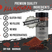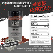 Elevate your BBQ dishes with the bold and flavorful Lane's BBQ Ancho Espresso Rub. This rub is our most unique and creative seasoning. If you are a coffee lover you will love this rub! it creates an incredible crust that locks in all the juicy goodness we are looking for. This high-quality blend of spices combines the smoky heat of ancho chili with the rich bitterness of espresso, creating a unique and irresistible taste that will impress your taste buds. It also features a blend of other premium quality ingredients, including garlic, cayenne, and coriander, to add depth and complexity to your BBQ dishes. Ideal for beef, chicken, pork, and vegetables, this rub can be used as a dry rub or in a marinade to infuse your dishes with an incredible aroma and taste. Give your grilling game a boost with Lane's BBQ Ancho Espresso Rub and savor the exceptional flavors it brings to your BBQ creations.