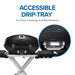 - Very compact when folded; it can be tucked away, stand upright in a corner with its convenient kick stand, or even hang up for the easiest grill storage ever